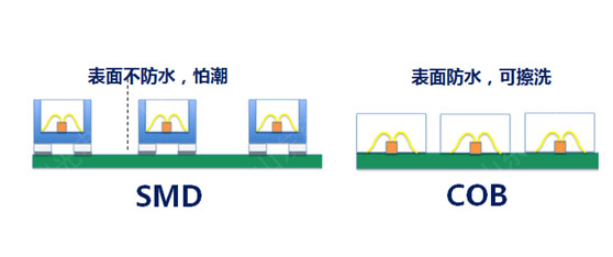 与SMD对比,COB的产品特点如下: